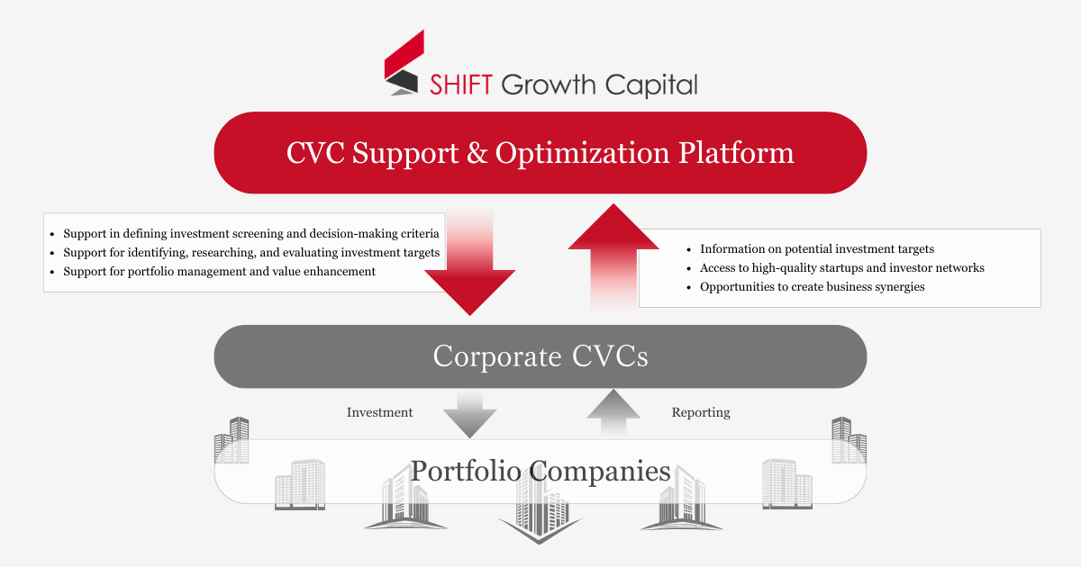 SHIFT Inc. (“SHIFT,” headquartered in Minato-ku, Tokyo, Japan; Masaru Tange, CEO and Representative Director; TSE Prime: 3697), a company that supports its clients in developing market-successful software services and products, is pleased to announce that its consolidated subsidiary, SHIFT Growth Capital Inc. (“SGC,” headquartered in Minato-ku, Tokyo, Japan; Hidetaka Kojima, Representative Director), has launched a “CVC (Corporate Venture Capital) Support & Optimization Platform.” This platform provides comprehensive support to optimize CVC operations, covering a wide range of activities including the selection of domestic and international investment targets, portfolio management, and value-creation initiatives.
